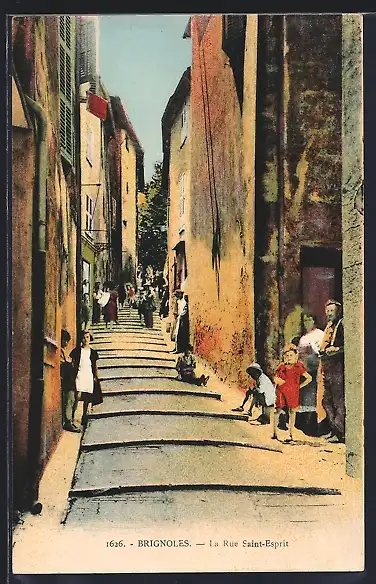 AK Brignoles, La Rue Saint-Esprit animée avec passants et enfants jouant