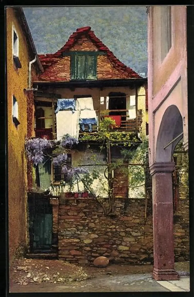 AK Brione, altes Haus im Ort mit Wäscheleine an der Fassade