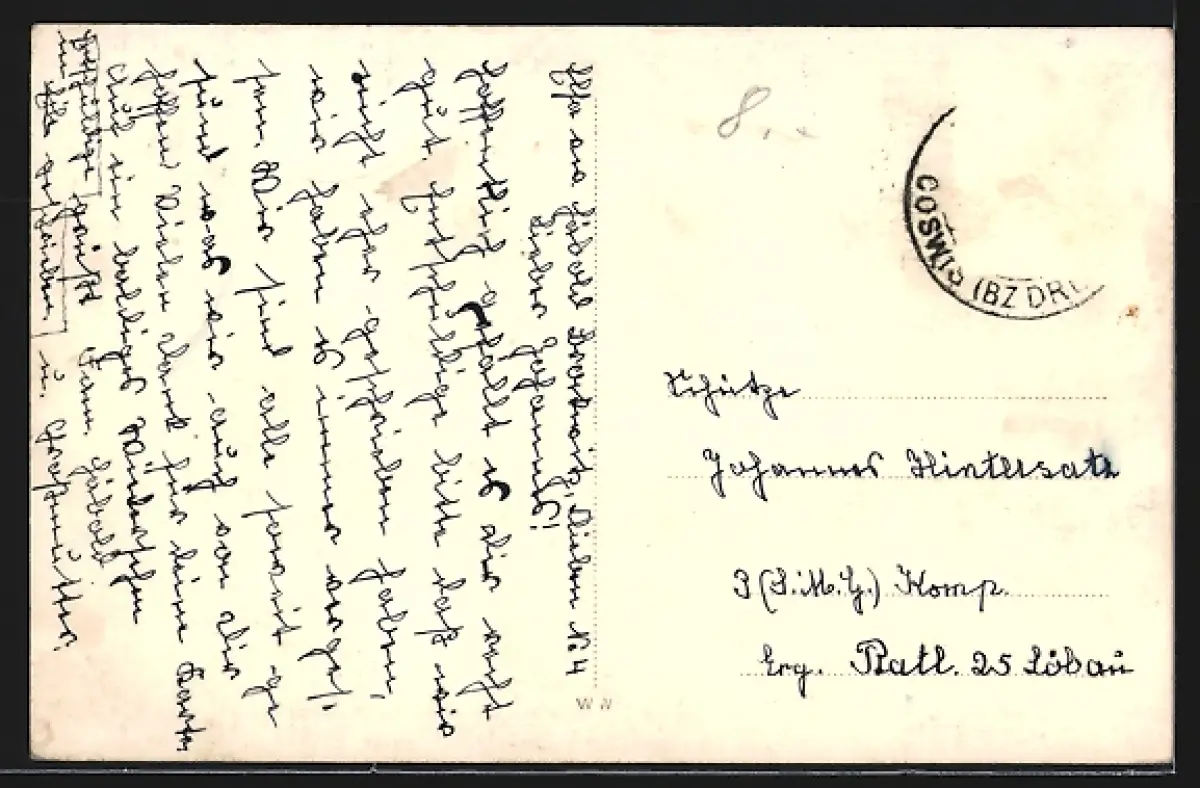 alte Ansichtskarte, gelaufen, Briefmarke entfernt, guter Zustand