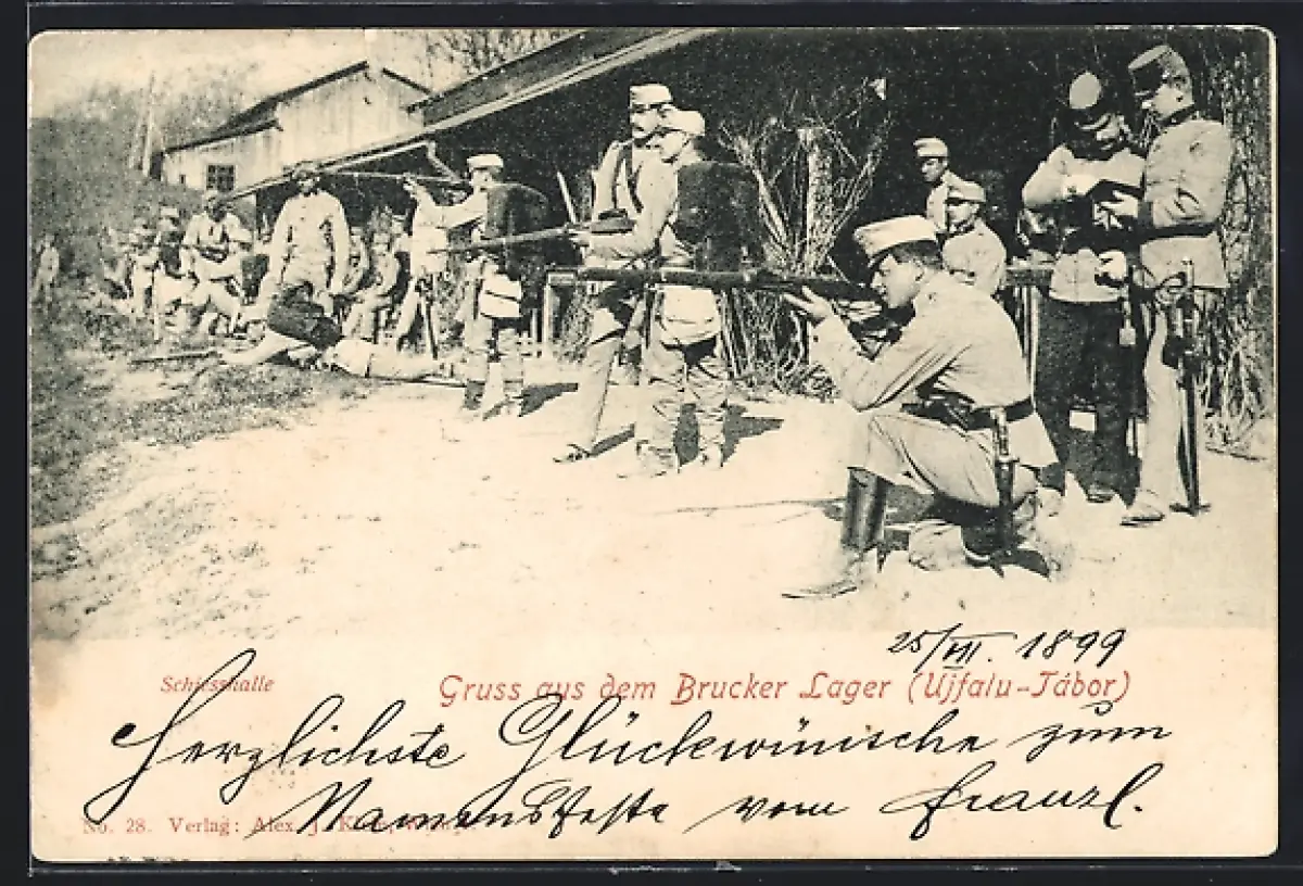 AK Brucker Lager, Soldaten in Uniform mit Gewehren