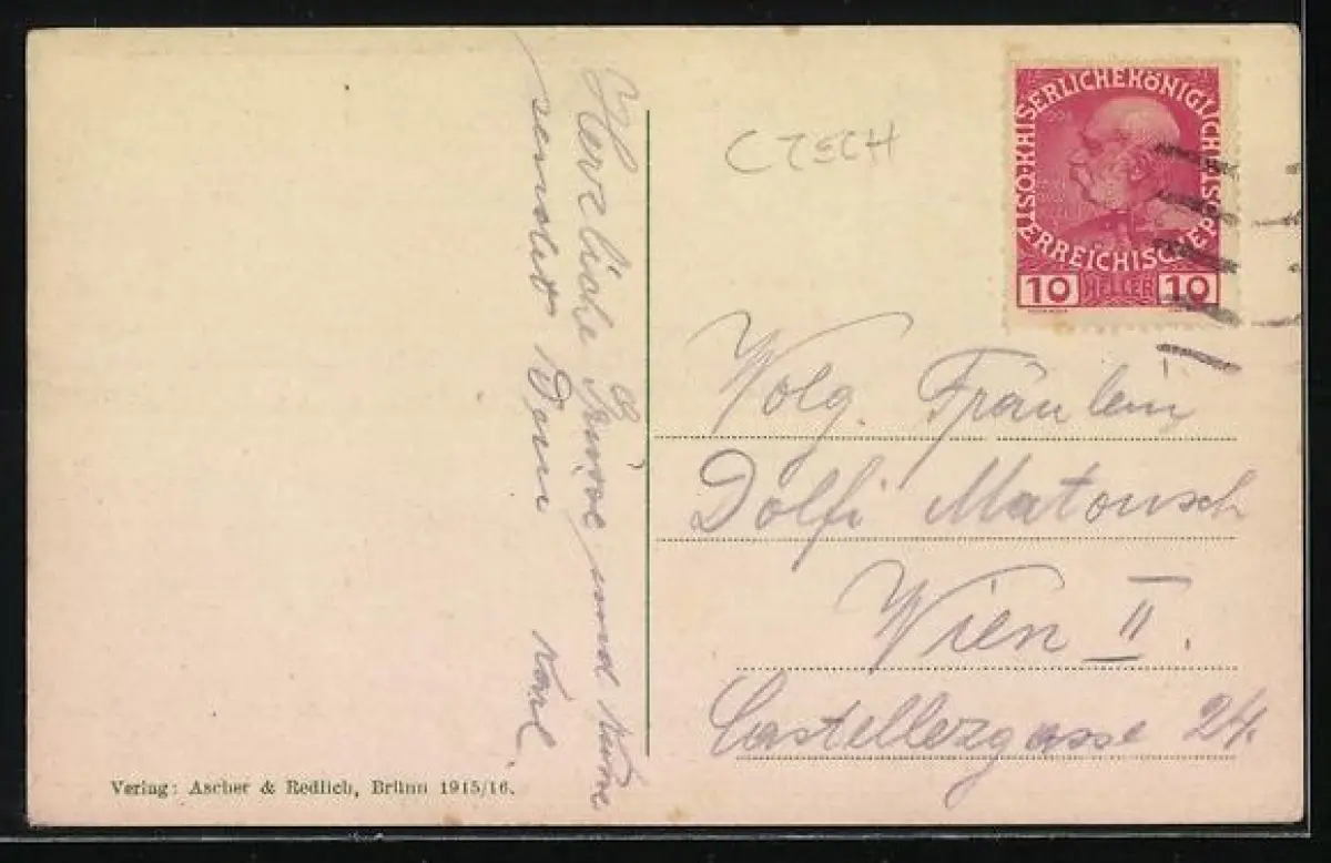 alte Ansichtskarte, gelaufen, Eckknick oben re., Stempelspur, guter Zustand