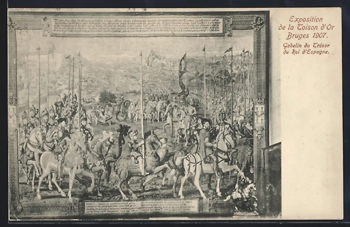 AK Bruges, Exposition de la Toison d`Or 1907, Gobelin du Trésor du Roi d`Espagne
