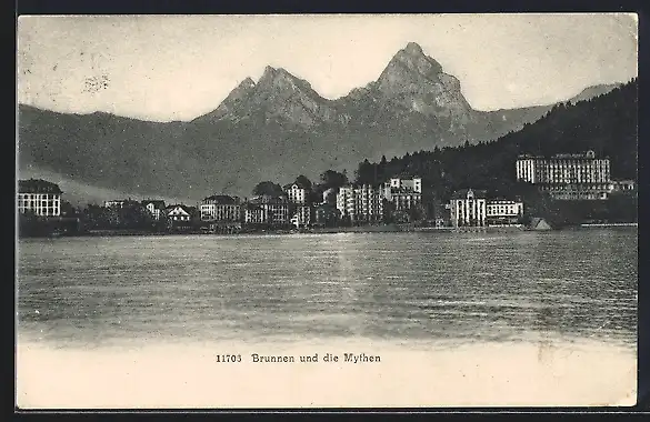 AK Brunnen, Ortsansicht gegen Mythen vom See aus