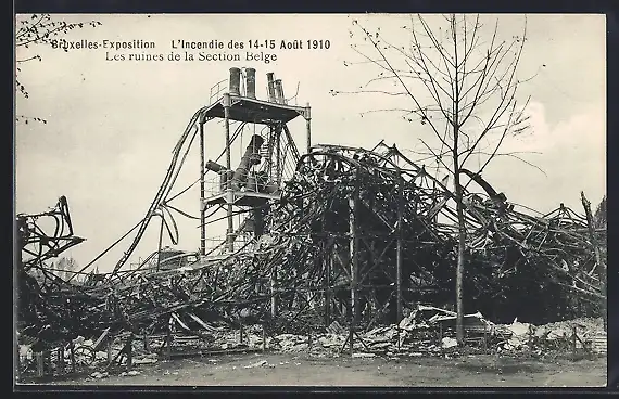 AK Bruxelles, Exposition 1910, L`Incendie, Les ruines de la Section Belge