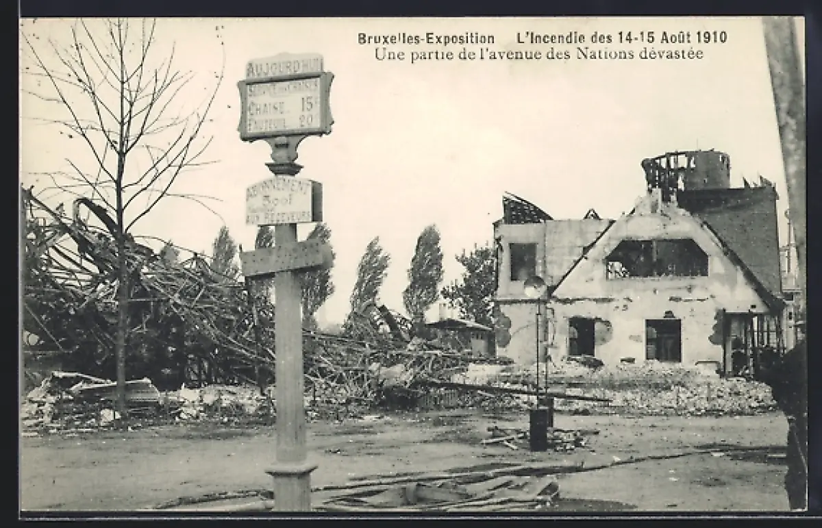 AK Bruxelles, Exposition 1910, L`Incendie, Une partie de l`avenue des Nations dévastée