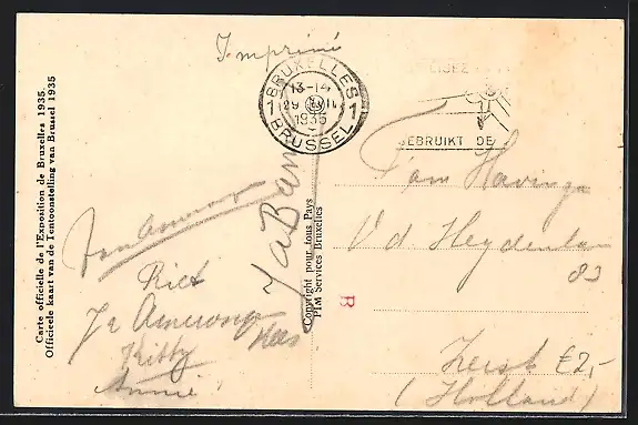 gelaufen 1935, Briefmarke entfernt, guter Zustand