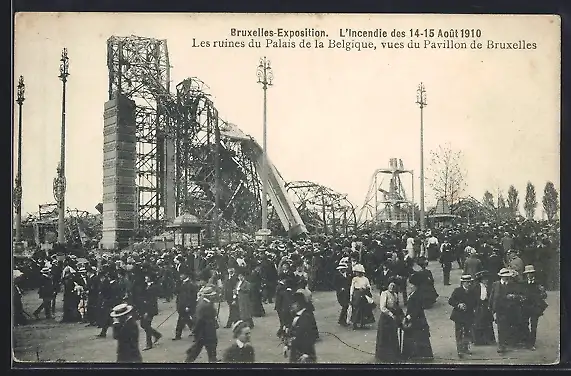 AK Bruxelles, Exposition Universelle 1910, L`Incendie de 1910, Les ruines du Palais de la Belgique