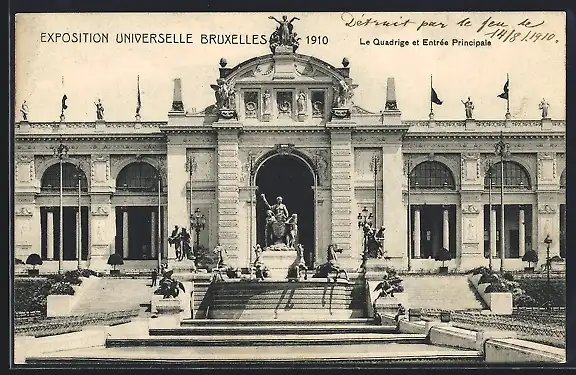 AK Bruxelles, Exposition Universelle 1910, Le Quadrige et Entrée Principale, Ausstellung