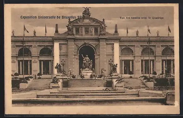 AK Bruxelles, Exposition Universelle de Bruxelles 1910, Vue des bassins avec le Quadrige
