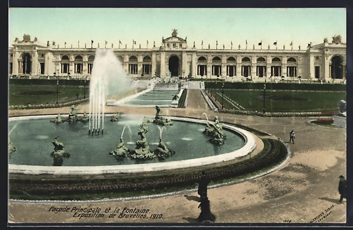 AK Bruxelles, Exposition de 1910, Facade Principale et la Fontaine