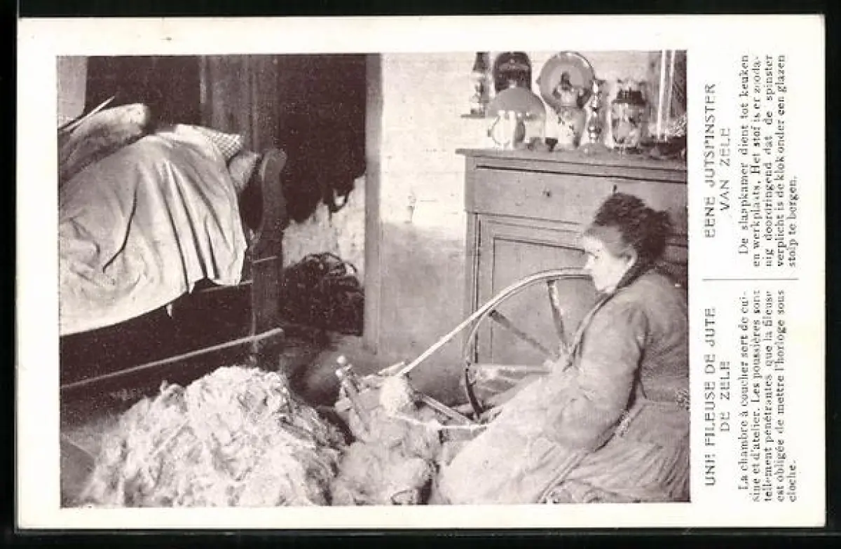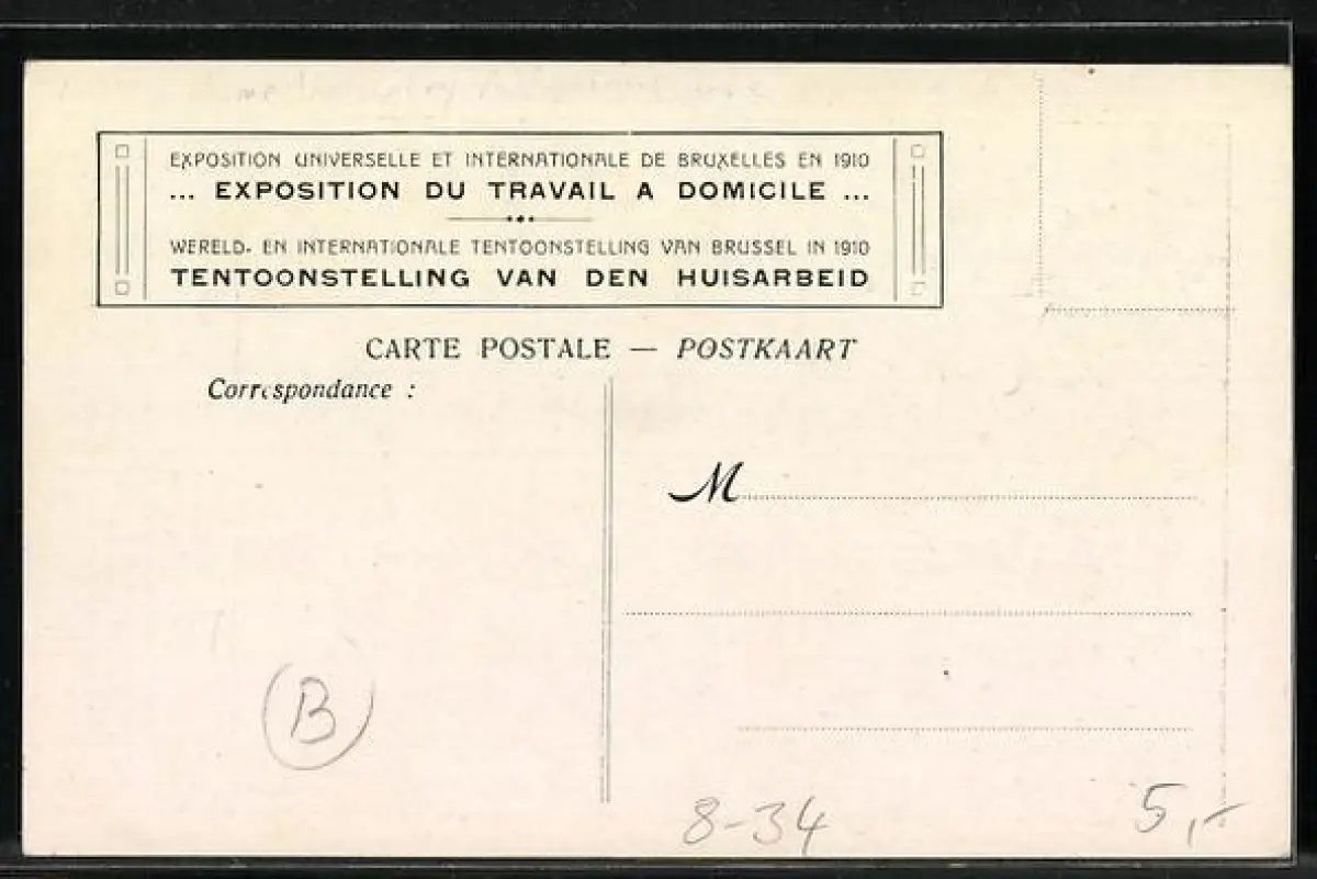 AK Bruxelles, Exposition du Travail a Domicile 1910, Dame mit Spinnrad