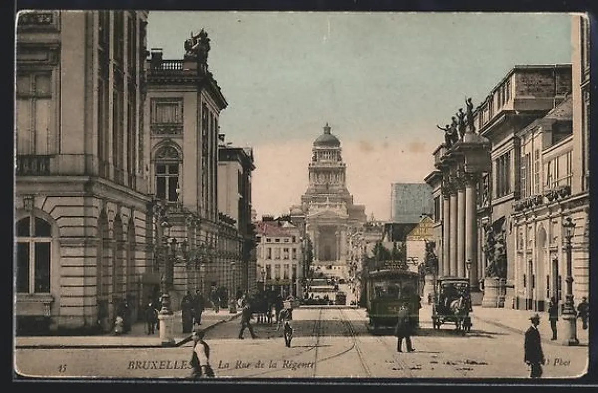 AK Bruxelles, Rue de la Régence mit Strassenbahn und Gebäudeansicht