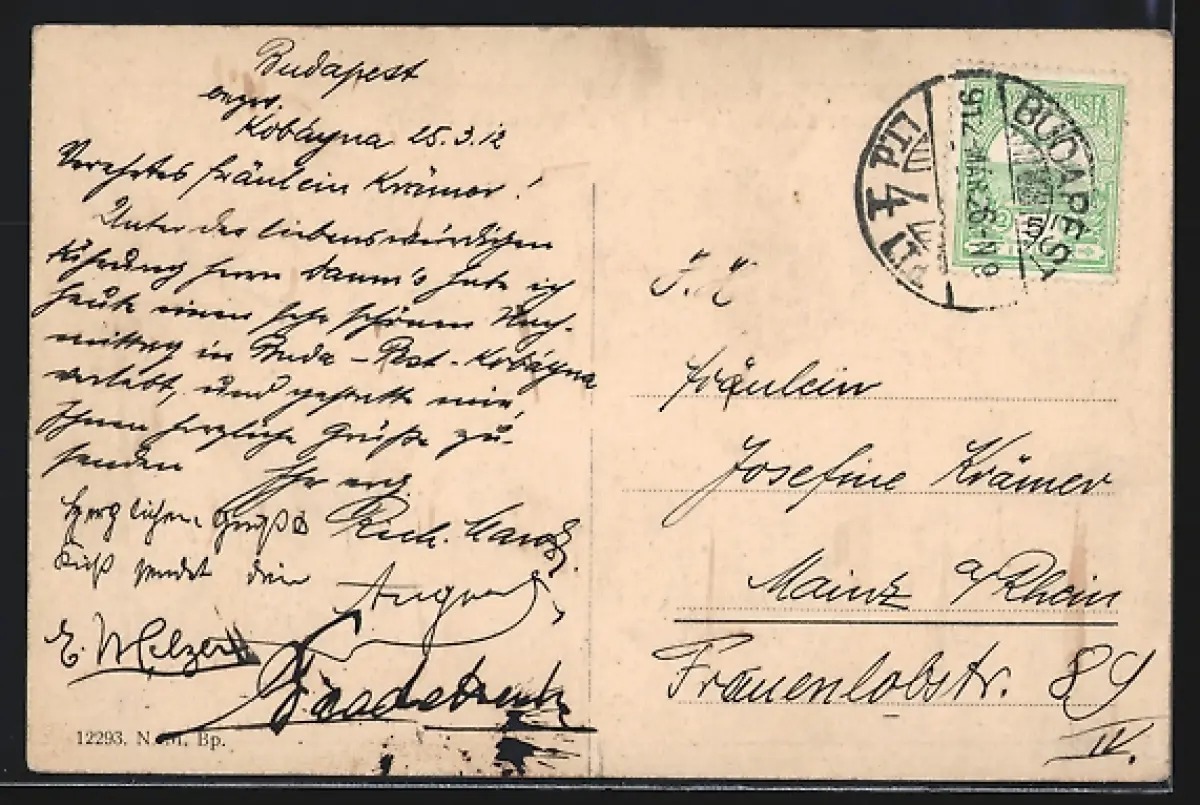 alte Ansichtskarte, gelaufen 1912, Stempelspur, minimaler Einriss unten mittig, guter Zustand