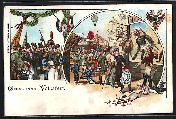 AK Buden, Riesenrad und Besucher auf einem Volksfest