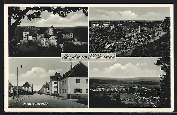 AK Burghausen / Obb., Neustadt, Teilansicht, Hindenburgstrasse, Burg