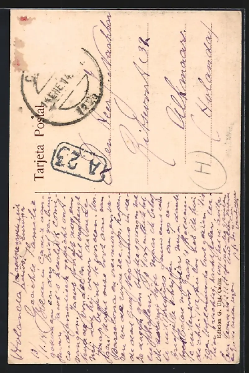 alte Ansichtskarte, gelaufen, Briefmarke entfernt, rückseitig Oberflächenschaden, sonst guter Zustand