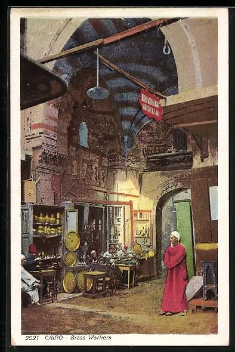 AK Cairo, Brass Workers, Arabische Händler auf dem Markt