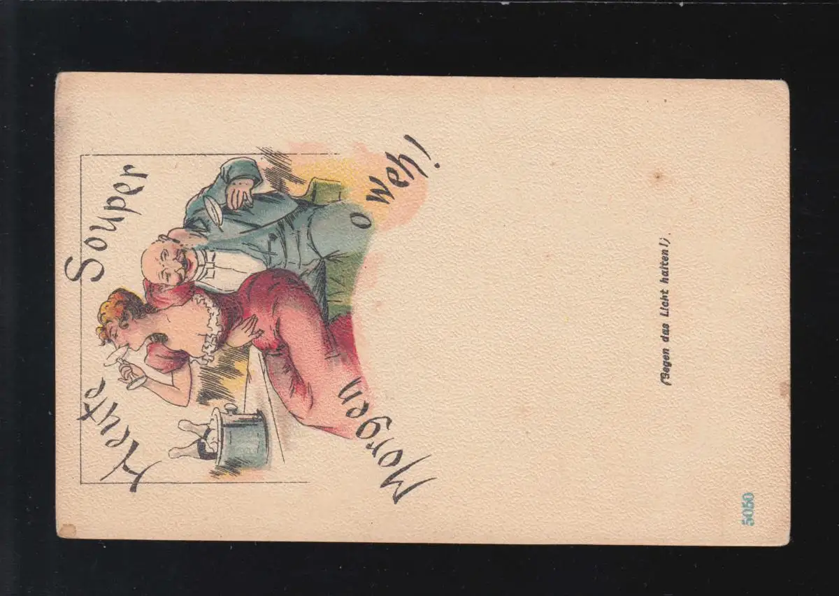 AK Caricature Aujourd'hui Souper demain o mal! tenir contre la lumière, inutile