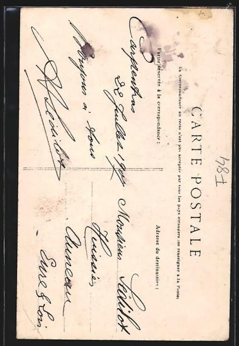 alte Ansichtskarte, gelaufen 1907, Eckknick re. unten, guter Zustand