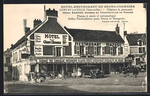 AK Cernay-la-Ville, Hôtel-Restaurant du Grand-Courrier avec voitures anciennes devant l`entrée