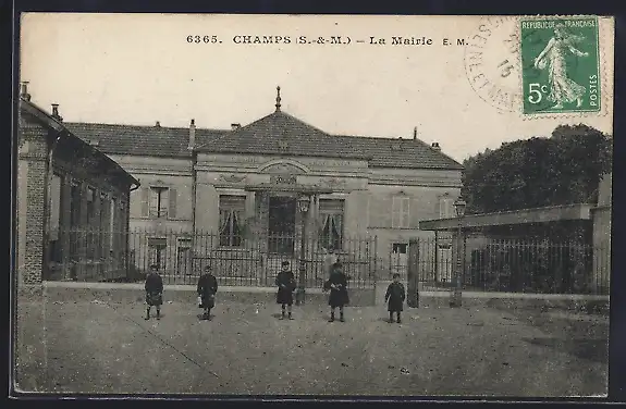 AK Champs, La Mairie avec enfants devant l`entrée