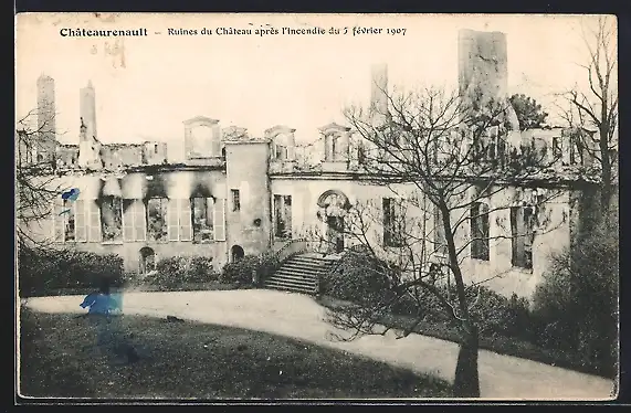 AK Chateaurenault, Ruines du Chateau aprés l'incendie 1907