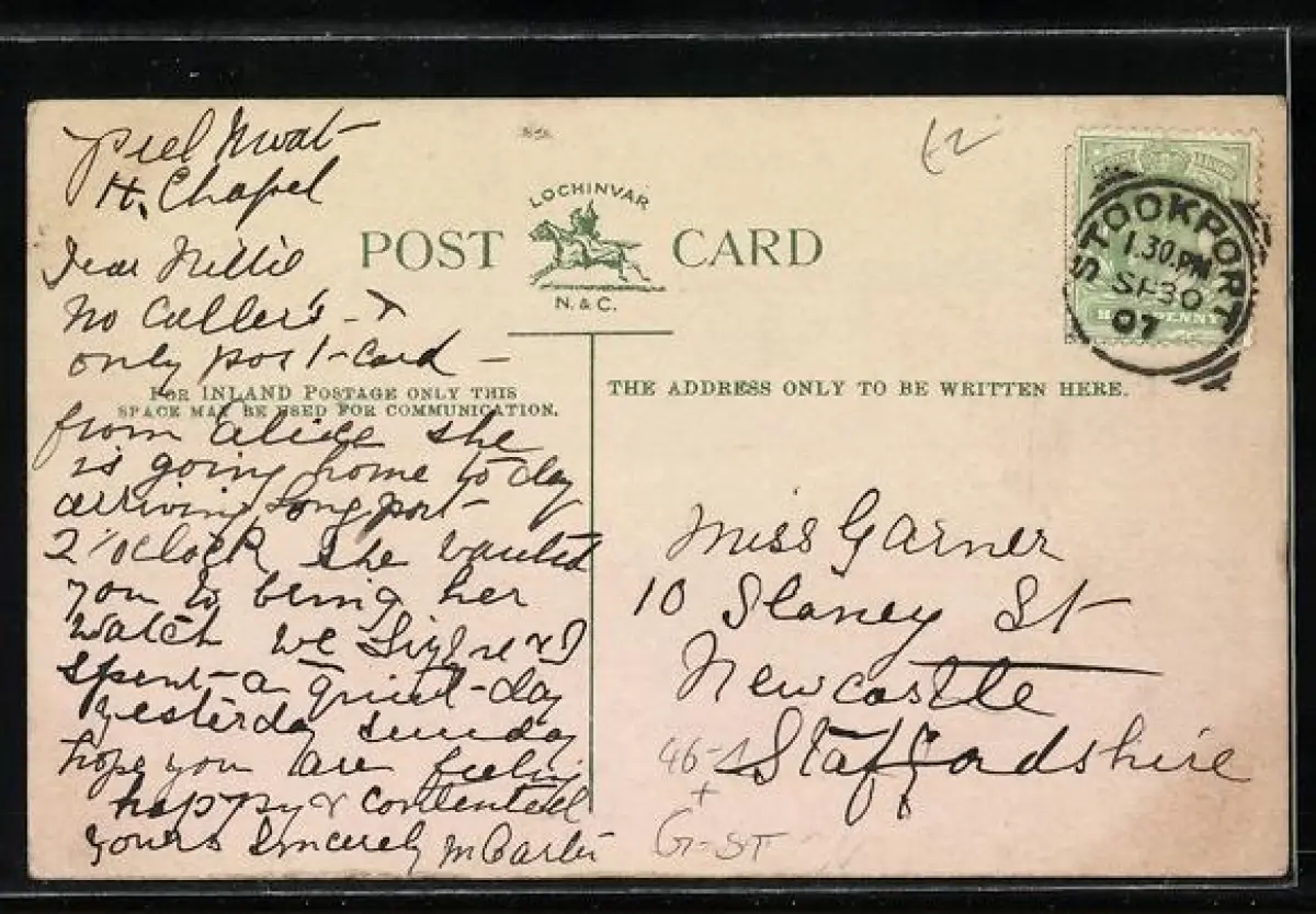 alte Ansichtskarte, gelaufen 1907, Eckknicke li., guter Zustand