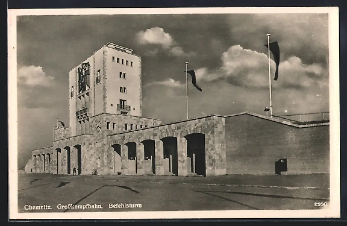 AK Chemnitz, Befehlsturm auf der Grosskampfbahn im Stadion