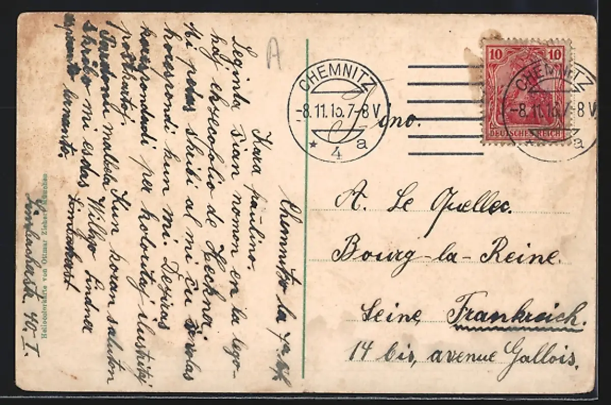 gelaufen 1913, Eckknick oben links, guter Zustand