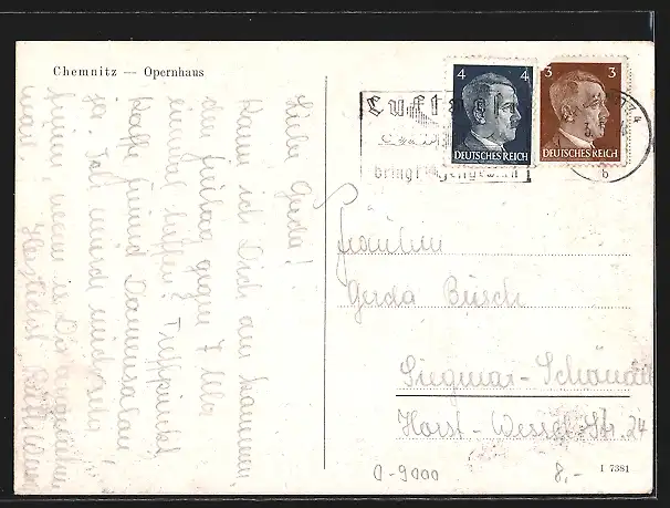 AK Chemnitz, Opernhaus aus der Vogelschau