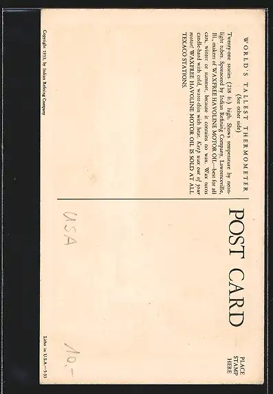AK Chicago, International Exposition 1933, Century of Progress, Havoline Thermometer
