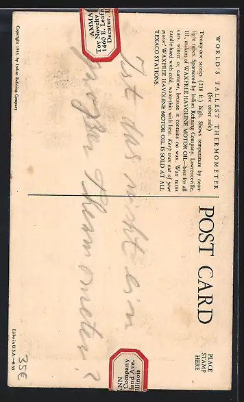 AK Chicago, International Exposition Century of Progress 1933, Havoline Thermometer