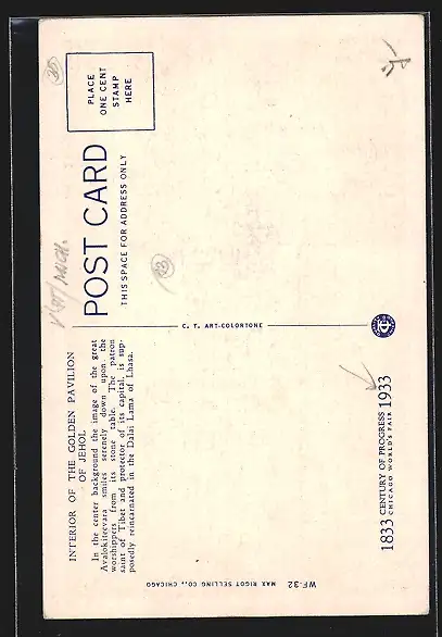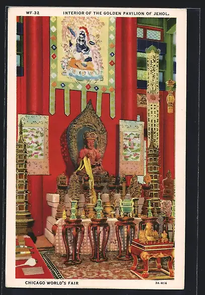 AK Chicago, World`s Fair 1933, Interior of the Golden Pavilion of Jehol
