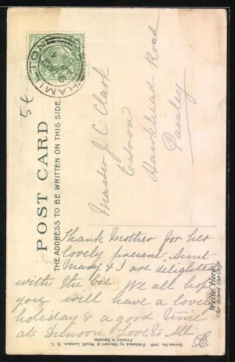 alte Ansichtskarte, gelaufen 1906, Eckknick unten re., guter Zustand