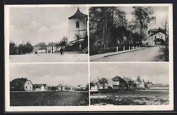 AK Chotetov, Strassenpartie, Platz mit Turm, Ortsansichten
