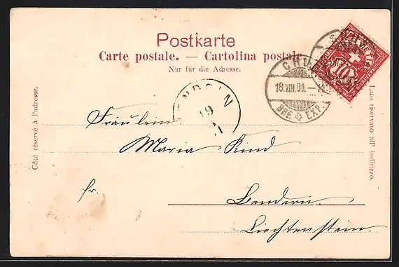 gelaufen 1901, Eckknick re. unten, guter Zustand