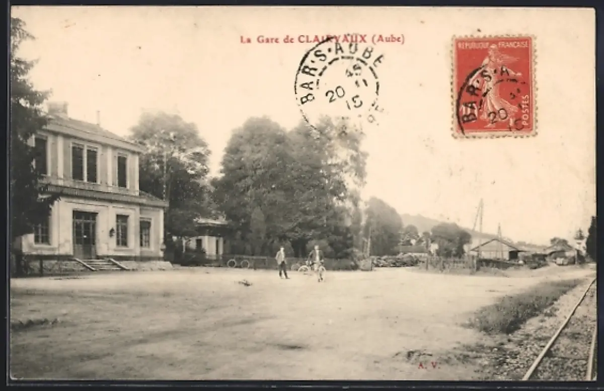 AK Clairvaux, La Gare, Mann mit Fahrrad vor Bahnhof