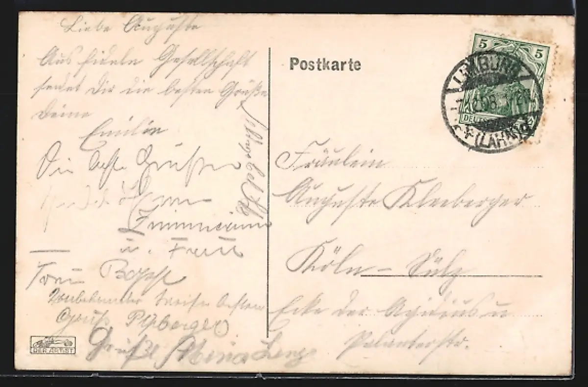 alte Ansichtskarte, gelaufen 1908, Eckknick li. oben, guter Zustand