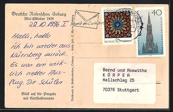 AK Coburg, Deutsche Rosenschau 1929, Blick auf die Pergola mit Sintflutbrunnen