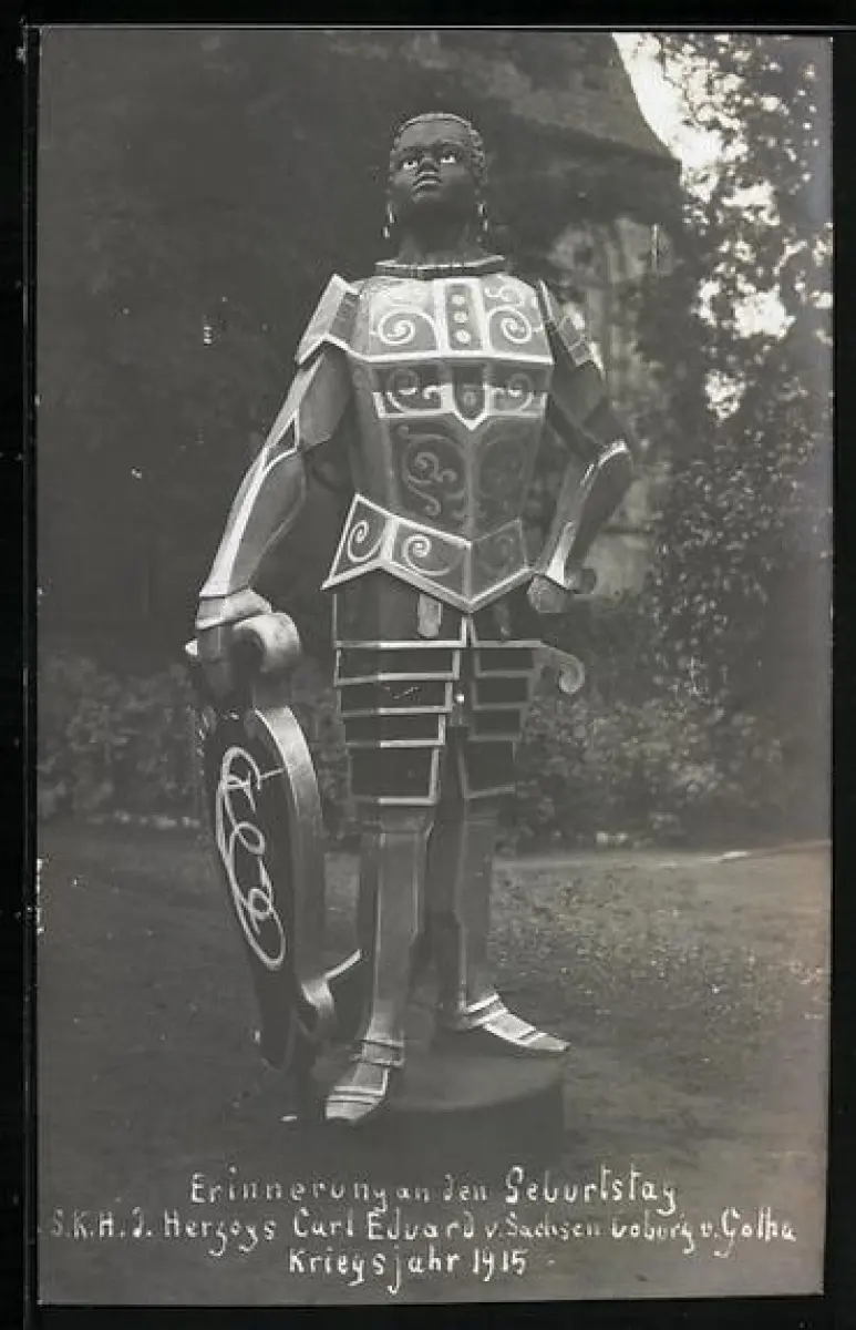 AK Coburg, Geburtstag Carl Eduard v. Sachsen Coburg u. Gotha 1915, Statue, Kriegshilfe