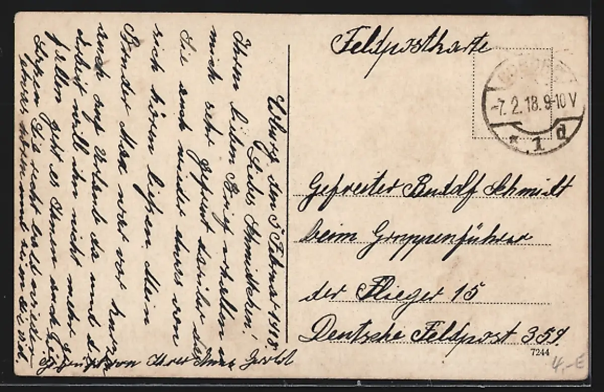 alte Ansichtskarte, gelaufen 1918 als Feldpost, Eckknick links oben, guter Zustand