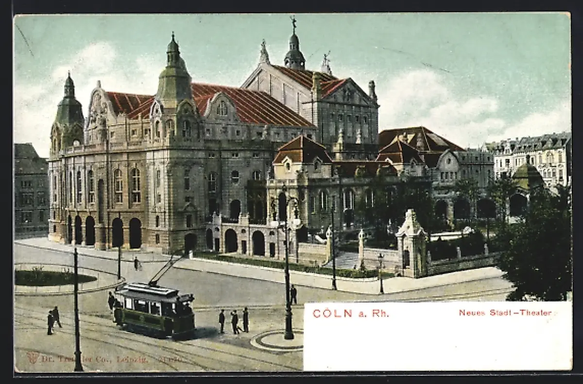 AK Cöln a. Rh., Neues Stadt-Theater, Strassenbahn