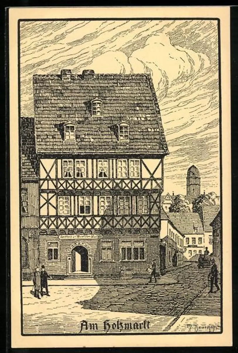 AK Cöthen, Am Holzmarkt, Fachwerkhaus