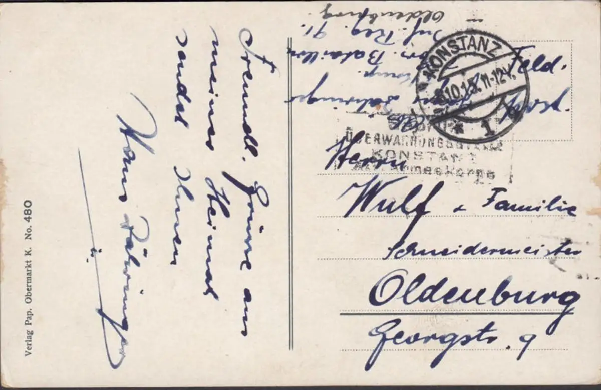 AK Konstanz Hafen Feldpost, gelaufen 1915