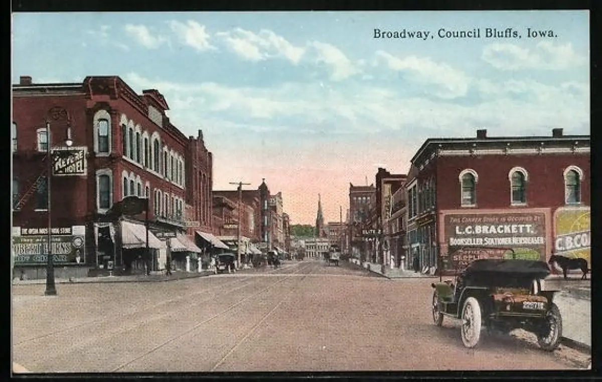 AK Council Bluffs, IA, Broadway with Revere Hotel