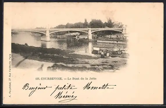 AK Courbevoie, Le Pont de la Jatte et les berges animées