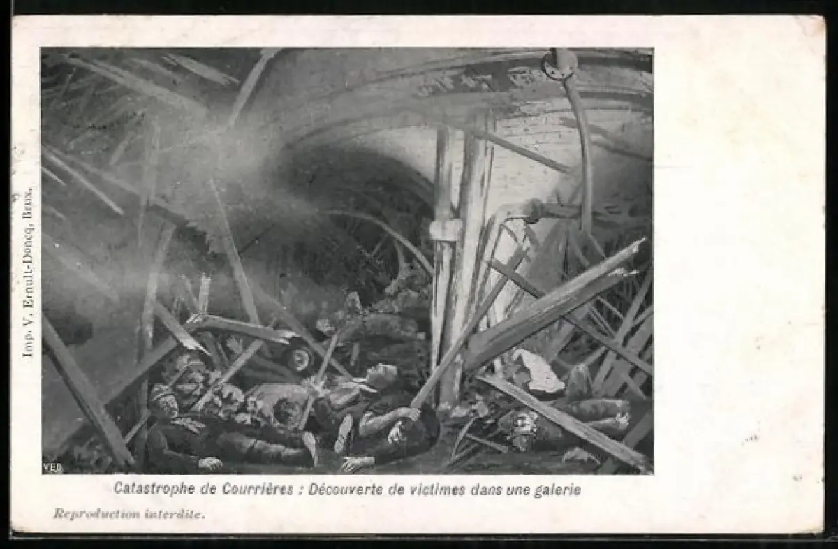 AK Courrières, Catastrophe de Courrières, Découverte de victimes dans une galerie, Grubenunglück 1906, Kohle