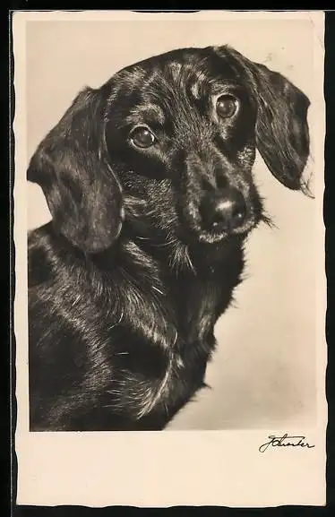 AK Dackel mit treuherzigem Blick, Portrait