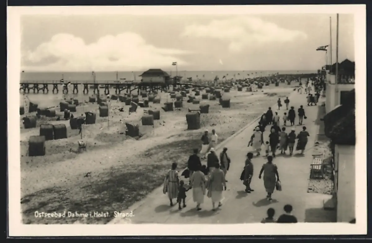 AK Dahme i. Holst., Panorama vom Strand mit Besuchern und Strandkörben