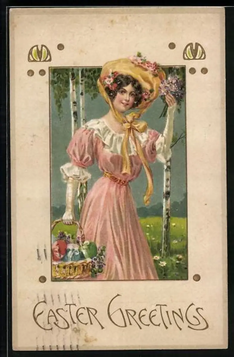 AK Dame mit Osterkorb